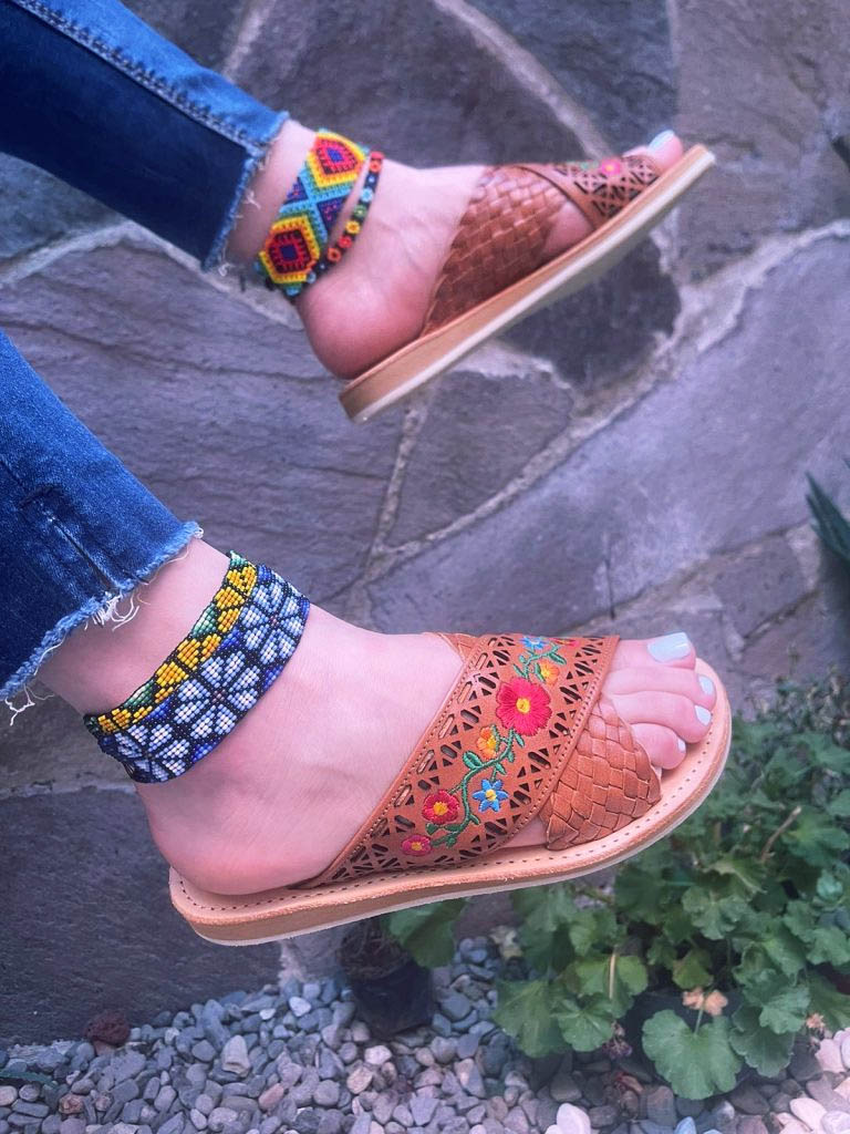 NATURAL LEATHER MAY REFLECT BLEMISHES, AND IT TAKES A FEW USES FOR YOUR HUARACHES TO STRETCH